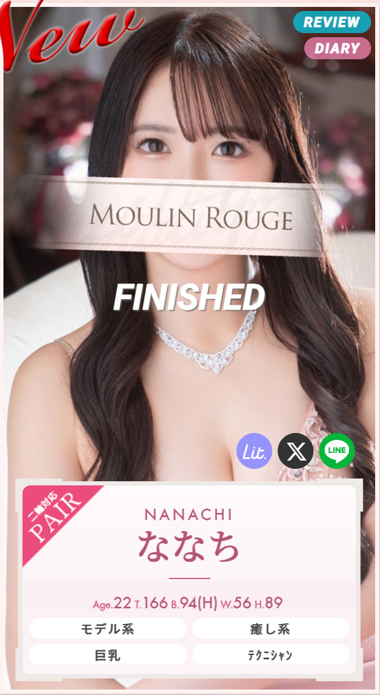 ななち这位选手虽然刚来红磨坊没多久,但明显是一个老师傅,属于主动进攻的肉食性选手,水床和调情技术细致且娴熟,该有的都有。颜值上和个人日记发布的照片大致8分相似,主要差别在于真人没那么白。身材上属于微胖系,胸非常大,相当于国内E~F罩杯,胸型漂亮而且丰满挺拔,根据经验来看是天然胸。腹部稍有赘肉,但整体无伤大雅。